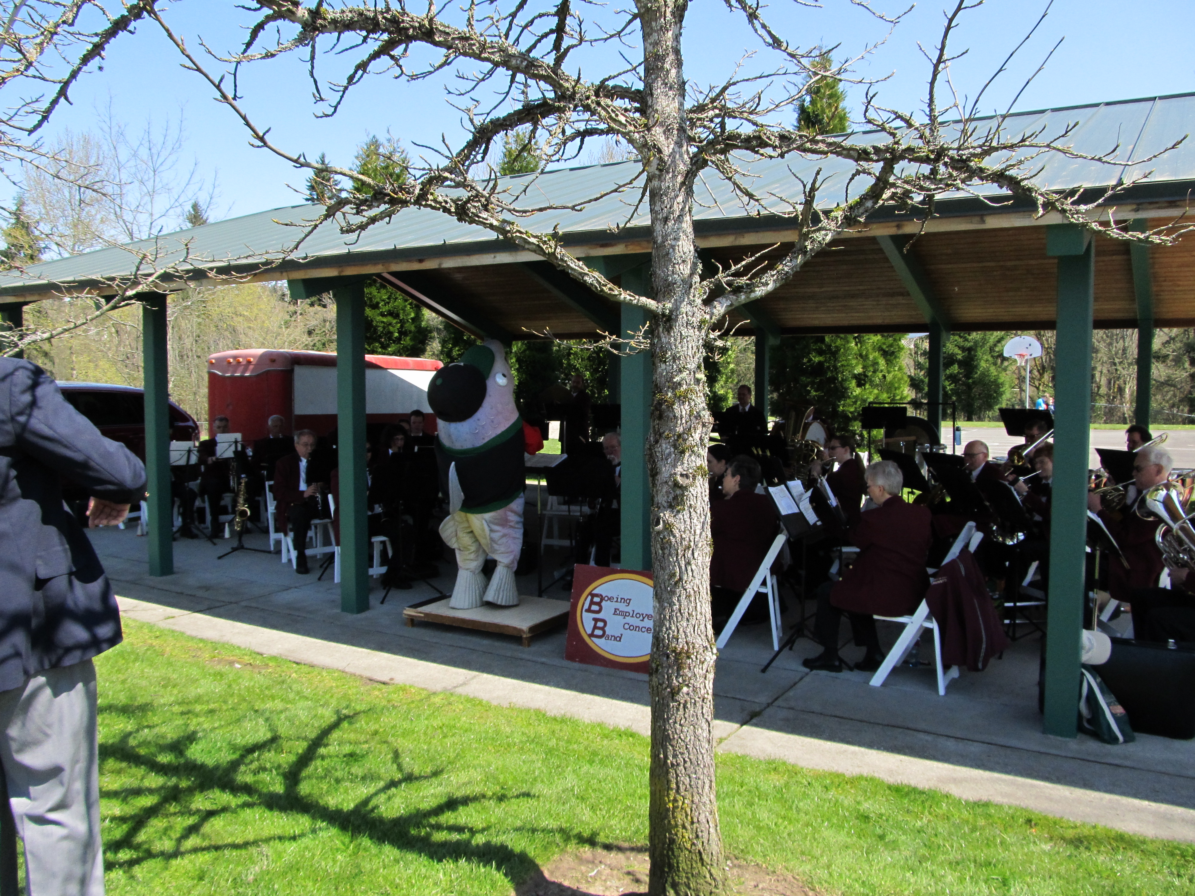This is the second year the Band has played at the Newcastle Earth Day activities. Bert the Salmon (known to the band as Monica) helped direct us during the concert.