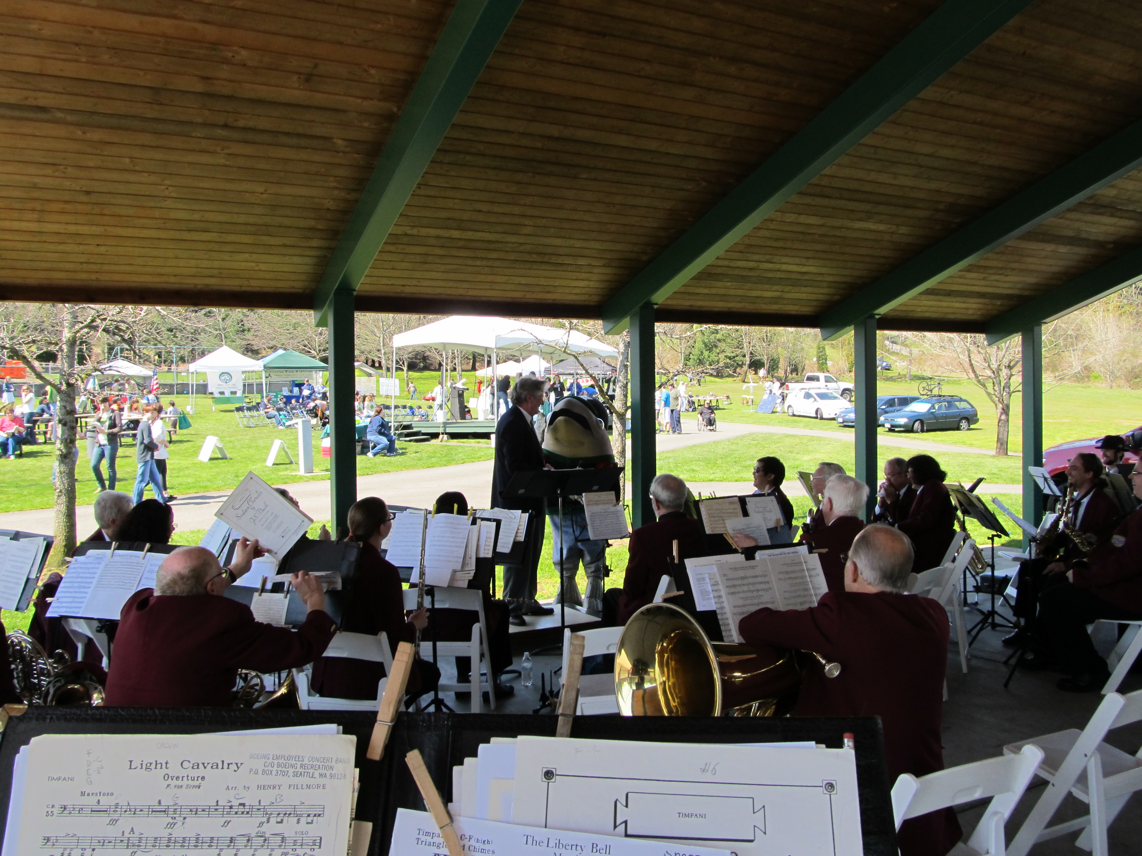This is the second year the Band has played at the Newcastle Earth Day activities. Bert the Salmon (known to the band as Monica) helped direct us during the concert.